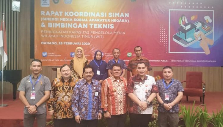 BOLSEL- Dinas Komunikasi dan Informatika Kabupaten Bolaang Mongondow Selatan mengikuti Rapat Koordinasi Sinergi Media Sosial Aparatur Negara (Rakor Siman) dan Bimtek Peningkatan Kapasitas Pengelola Media Wilayah Indonesia Timur yg digelar di Hotel Aryaduta Manado pada Jumat (28/02/2020). Kegiatan ini dibuka langsung oleh Dirjen Informasi dan Komunikasi Publik (Dirjen IKP) Kementerian Kominfo, Prof. Dr. Widodo Muktiyo yg diikuti oleh para pengelola media di lingkungan ASN/TNI/Polri se-wilayah Indonesia Timur.