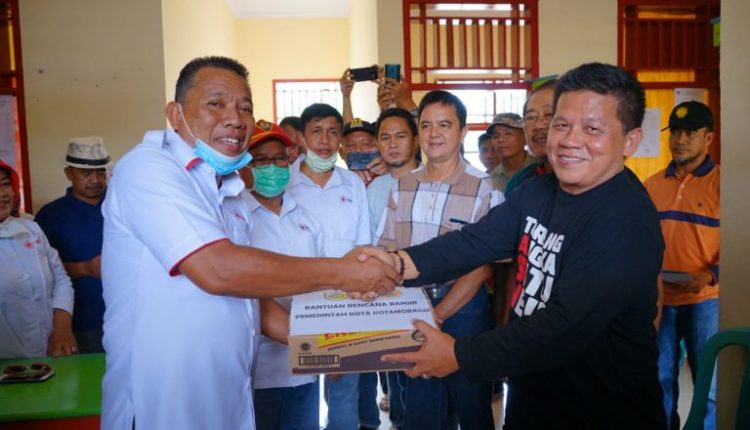 KOTAMOABGU- Pemerintah Kota (Pemkot) Kotamobagu menyerahkan bantuan bagi korban banjir yang melanda sejumlah Desa di Kabupaten Bolaang Mongondow Utara (Bolmut).