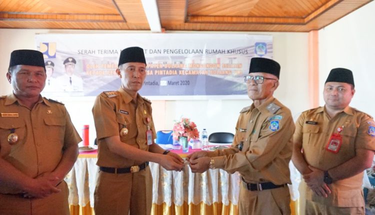 BOLSEL- Bupati Bolaang Mongondow Selatan Hi. Iskandar Kamaru, didampingi Wakil Bupati Deddy Abdul Hamid dan Sekda Marzanzius A Ohy, S.STP menghadiri dan memeberikan sambutan pada acara serah terima manfaat dan pengelolaan Rumah Khusus oleh Pemda Bolsel kepada Pemerintah Desa Pintadia Kec. Bolaang Uki untuk diteruskan kepada masyarakat penerima manfaat Rumah Khusus di Desa Pintadia,Acara yang dilaksanakan di Balai Desa Pintadia Senin (09/03/2020) ini juga dihadiri oleh para kepala SKPD, dan masyarakat penerima Manfaat, Dan dilanjutkan dengan peninjauan rumah khusus, Sementara itu bupati Hi.Iskandar Kamaru menyampaikan Masyarakat diminta menerima Rumah yg telah dibangun ini