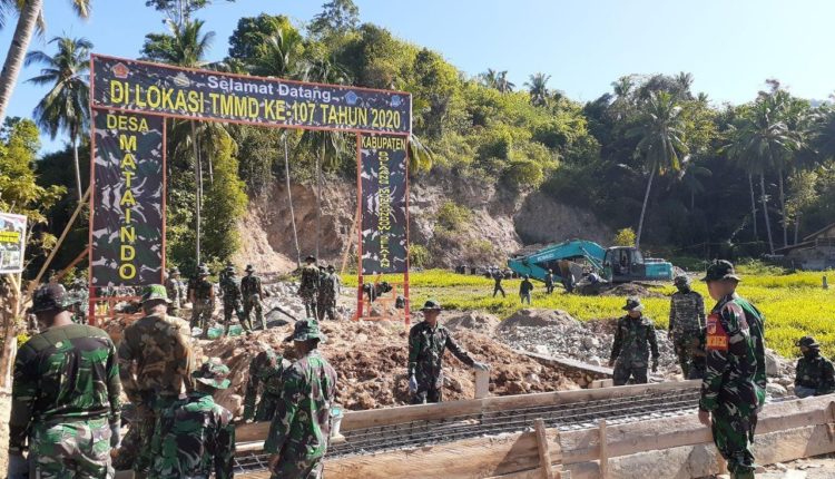 Mengawali peninjauannya Wada Satgas TMMD 107 meninjau kegiatan pembuatan jalan baru usaha tani di Desa Mataindo. Di tempat ini Mayor Inf Sampir menemukan progres yang cukup baik.