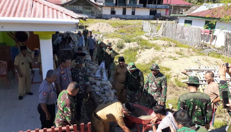 BOLSEL- Di hari pertama program TNI Manunggal Membangun Desa (TMMD), diawali dengan peletakan batu pertama pembangunan pagar masjid Al-Ikhdar Desa Mataindo Kecamatan Pinolosian Tengah Kabupaten Bolaang Mongondow Selatan yang dilakukan oleh Wakil Bupati Bolsel Dedy Abdul Hamid, dilanjutkan oleh Kombes Pol Dumadi, Dandim 1303/Bolmong, Kapolsek Pinolosian, Camat Pinteng dan Kepala Desa (Sangadi) Mataindo, Senin (16/03/2020).