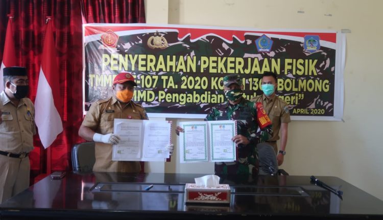 BOLSEL- Selasa (14/04/2020) Bertempat di Ruang Rapat Bappelitbangda Kabupaten Bolaang Mongondow Selatan ( Bolsel) Mewakili Bupati Hi.Iskandar Kamaru dan Wakil Bupati Deddy Abdul Hamid, Sekertaris Daerah Marzanzius A Ohy, Melakukan penandatanganan Penyerahan Pekerjaan Fisik TMMD ke-107 Tahun Anggaran 2020 Antara Pemerintah Daerah Kabupaten Bolaang Mongondow Selatan dan Kodim 1303/BM