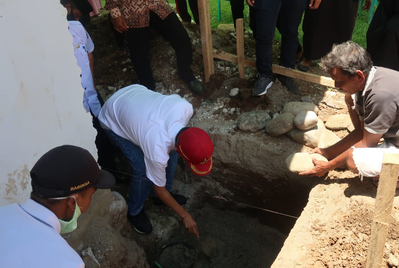 Turut mendampingi Peleteken batu pertama tersebut Camat Tomini, Kabag Protokol, Kabag Pembangunan dan SDA Setda Bolsel (Dp)