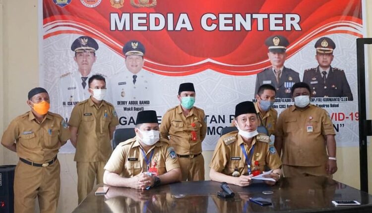 Ketua tim Gugus Tugas Covid-19,Bupati Bolsel Hi Iskandar Kamaru ,saat konferensi pers, Dikantor BPBD Bolsel Didampingi Sekretaris Daerah, Marzanzius A Ohy, Kepala Dinas Kesehatan Bolsel dr.Saldy Mokoagow Senin(4/5/2020) mengatakan, pihaknya telah menerima hasil Swab.