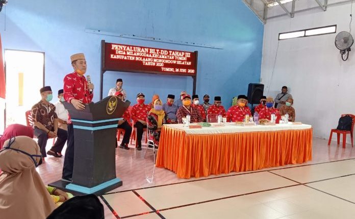 BOLSEL – Bupati Kabupaten Bolaang Mongondow Selatan(Bolsel) Hi. Iskandar Kamaru bersama Wakil Bupati Deddy Abdul Hamid melanjutkan penyalurkan BLT-DD di tujuh Desa diantaranya kecamatan Bolaang Uki, Tomini dan Helumo, Jumat (26/6/2020)