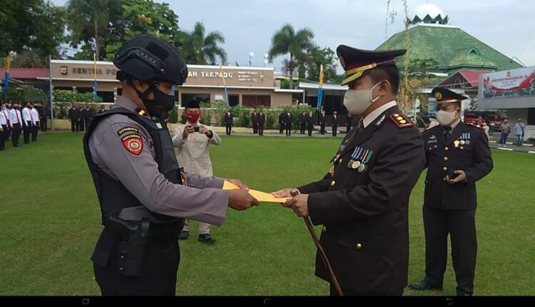 INDO NEWS – Kepala Kepolisian Resor Kotamobagu AKBP Prasetya Sejati SIK, memimpin upacara pemberian reward kepada anggota Polres Kotamobagu yang berprestasi.
