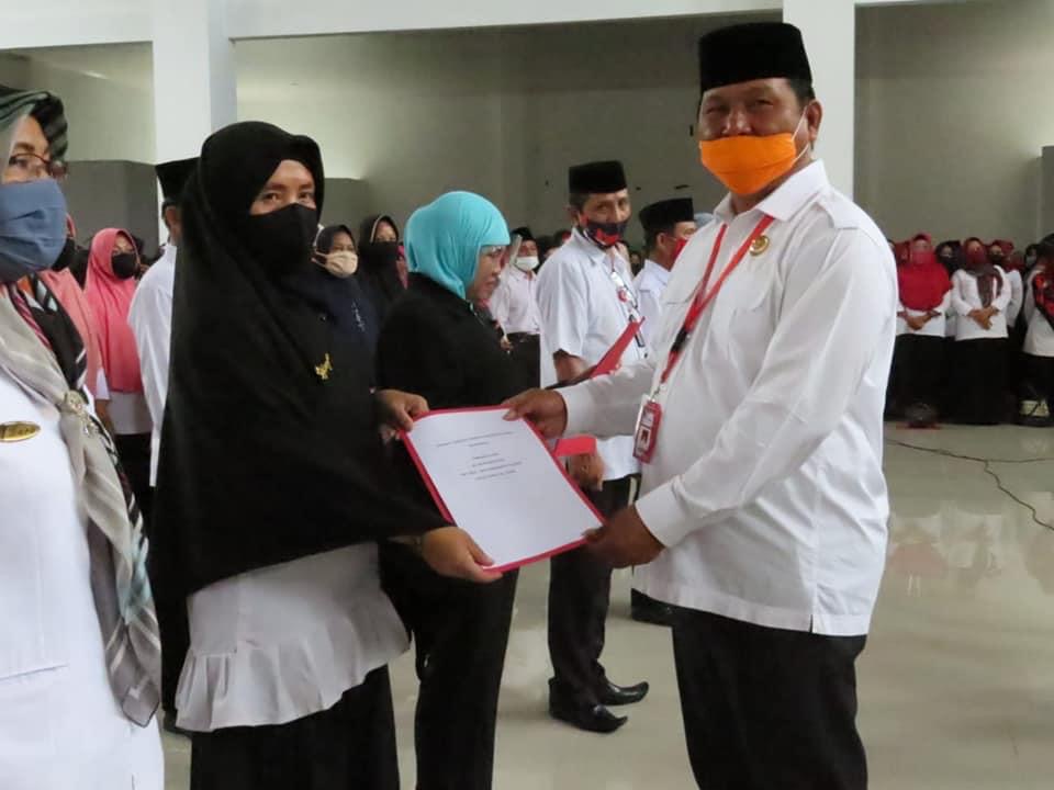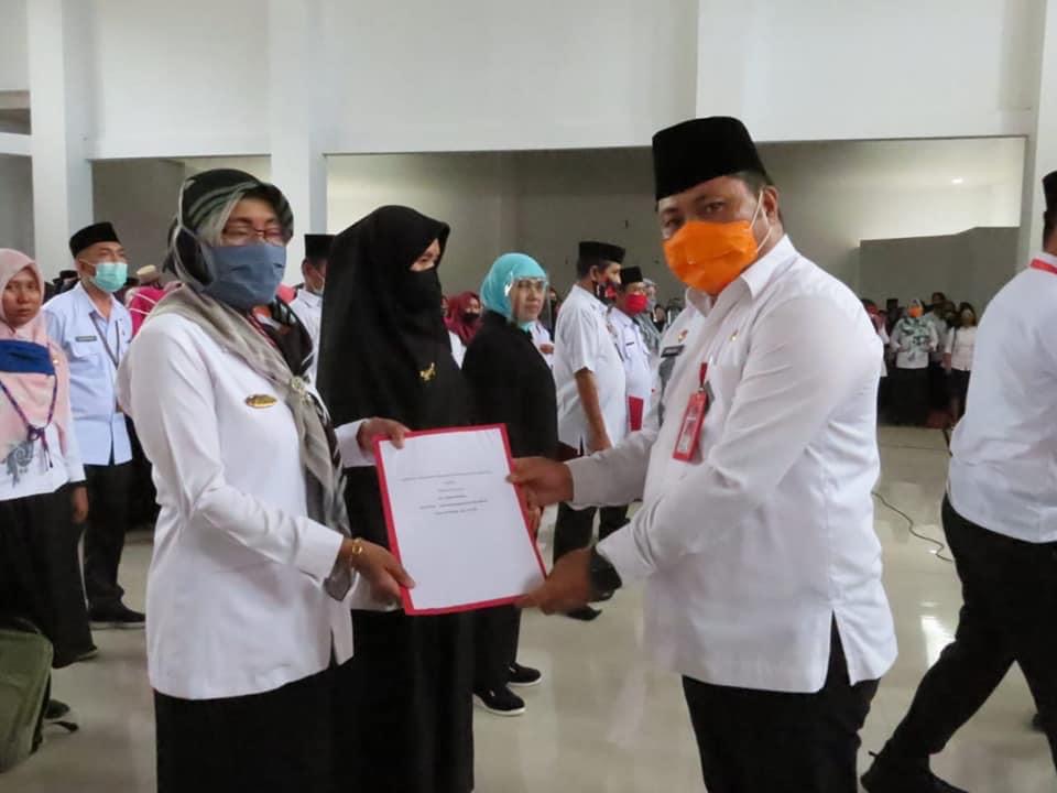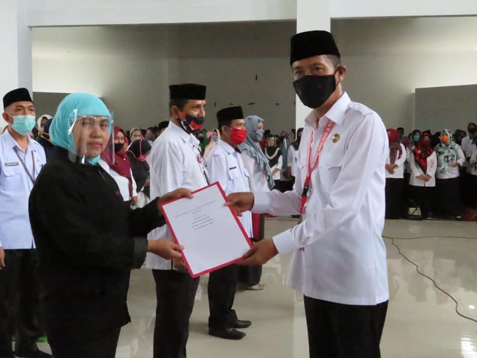 Bupati dalam sambutannya mengharapkan guru dan tenaga pendidikan terus berupaya meningkatkan kapasitas untuk menjadi aparatur yang selalu mengedepankan tri matra pengabdian yakni dispilin, profesional dan loyal.