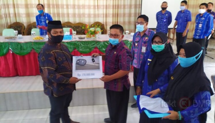KOTAMOBAGU- Wakil Walikota Kotamobagu, Nayodo Koerniawan, menyerahkan kendaraan mobil operasional Badan Usaha Milik Desa (BUMDes) Gogaluman, Desa Bilalang I. Kamis (16/07/2020).