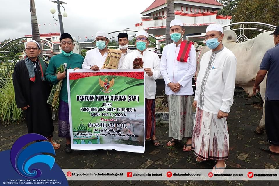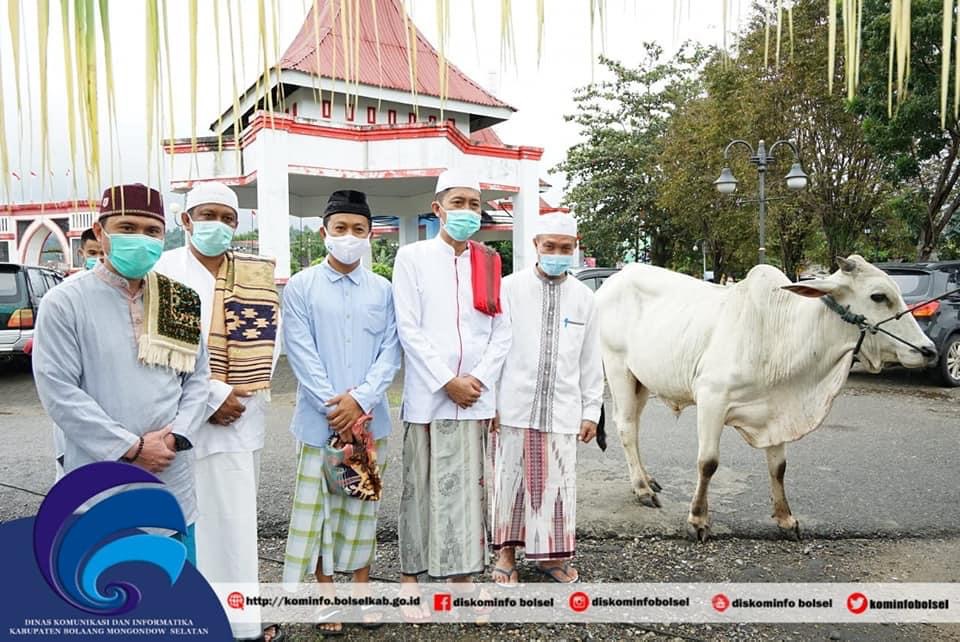 Kesempatan ini juga bolsel mendapatkan bantuan sapi kurban dari Presiden Republik Indonesia Bpk. H. Ir. Joko Widodo dan diterima langsung oleh bupati bolsel serta dilaksanakan pelaksanaan qurban berdasarkan Surat Edaran Nomor : 008/SE/PK.320/F/06/2020 tentang pelaksanaan kegiatan qurban dalam situasi bencana non alam covid-19
