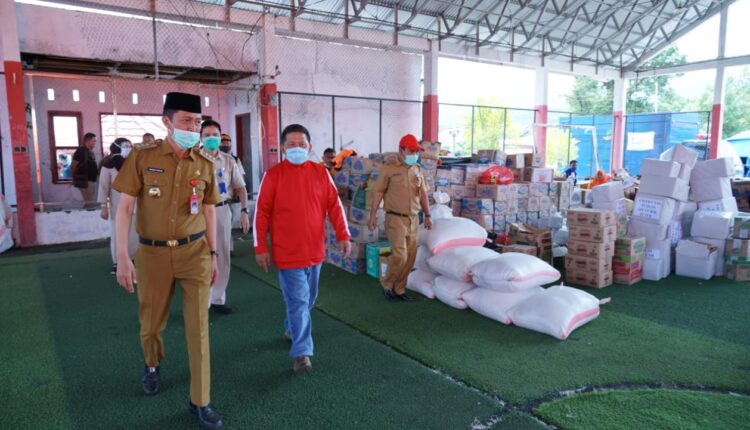 BOLSEL- Bupati Bolaang Mongondow Selatan (Bolsel) Hi.Iskandar Kamaru menerima bantuan logistik bencana banjir dan tanah longsor dari Pemerintah Kota Kotamobagu Senin(10/8/2020).