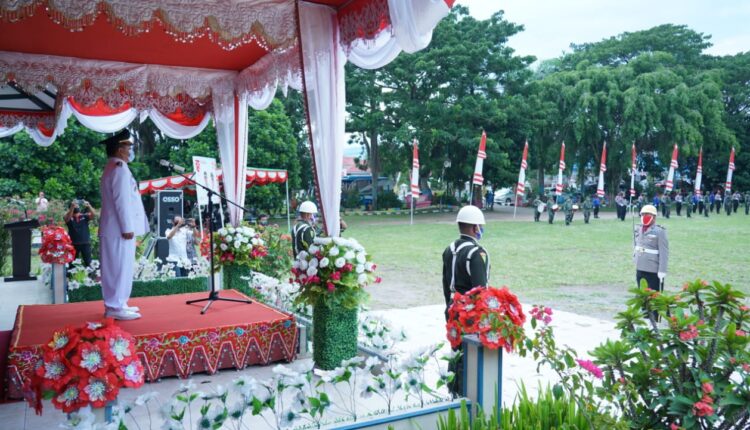 KOTAMOBAGU– Wakil Wali Kota Kotamobagu Nayodo Koerniawan SH, Senin (17/08/2020) sore tadi menjadi inspektur upacara (Irup) penurunan bendera dalam rangka Hari Ulang Tahun (HUT) Republik Indonesia ke 75.