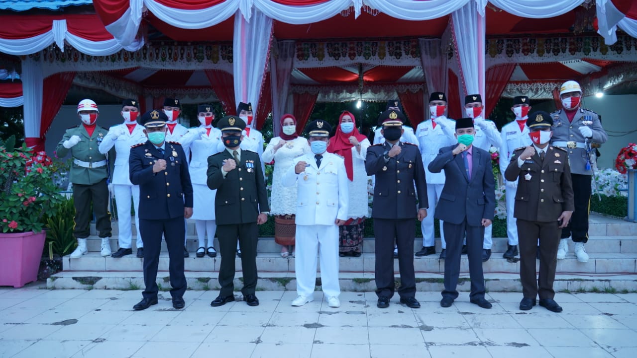 Dimana, untuk Pasukan Pengibar Bendera (Paskibra) yang bertugas dalam kegiatan itu, masih seperti pagi tadi yakni 8 orang, dan merupakan purna Paskibra hasil seleksi tahun 2019 lalu.Proses upacara penurunan bendera itu pun tidak berlangsung lama, dan sekira 20 menit, serta dihadiri juga oleh jajaran Kepala Satuan Kerja Perangkat Daerah (SKPD), pejabat eselon III, serta personil TNI dan Polri, juga beberapa petugas Pemadam Kebakaran (damkar) yang terlihat ikut bersiaga, selama proses upacara penurunan bendera berlangsung.