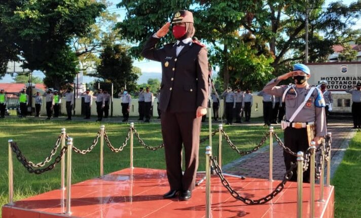 INDO NEWS – Waka Polres Kotamobagu Kompol Rina Frillya SIK, bertindak selaku inspektur upacara pada perayaan hari Kemerdekaan Republik Indonesia (RI) ke 75, Senin (17/08/2020). Kegiatan Upacara yang digelar sekitar pukul 07.00 Wita pagi tadi, tengah diikuti ASN Polres Kotamobagu serta, seluruh Pejabat Utama (PJU) Polres.