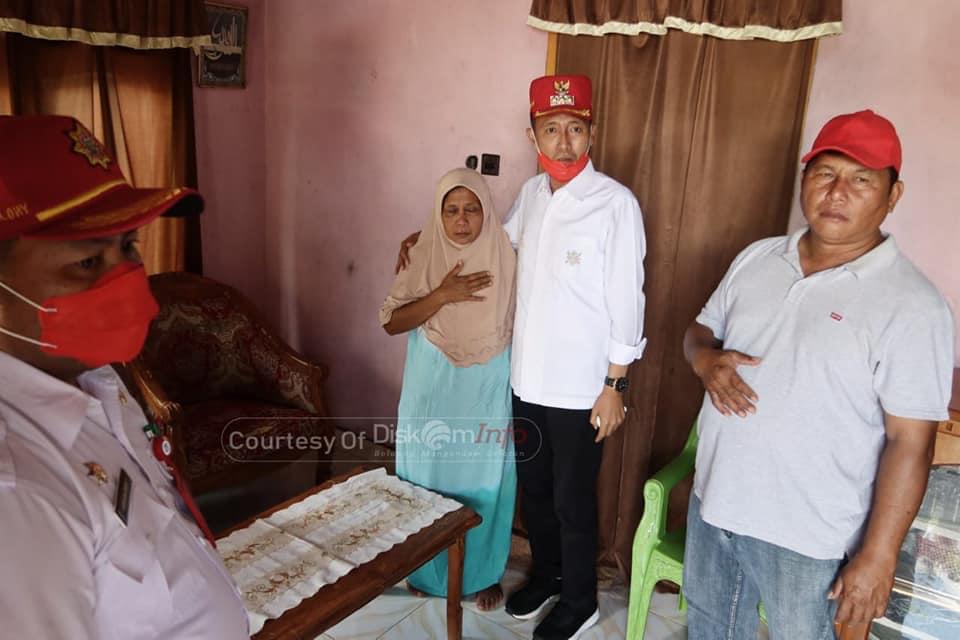 BOSEL- Bupati Bolsel Hi.Iskandar Kamaru, didampingi Wabup Bolsel Deddy Abdul Hamid meninjau lokasi korban hanyut Sabtu(15/8/2020) Subuh Paputungan (82), sekaligus memberikan santunan untuk keluarga korban di Desa Kombot Timur Kec. Pinolosian Bolsel (19/8/2020).
