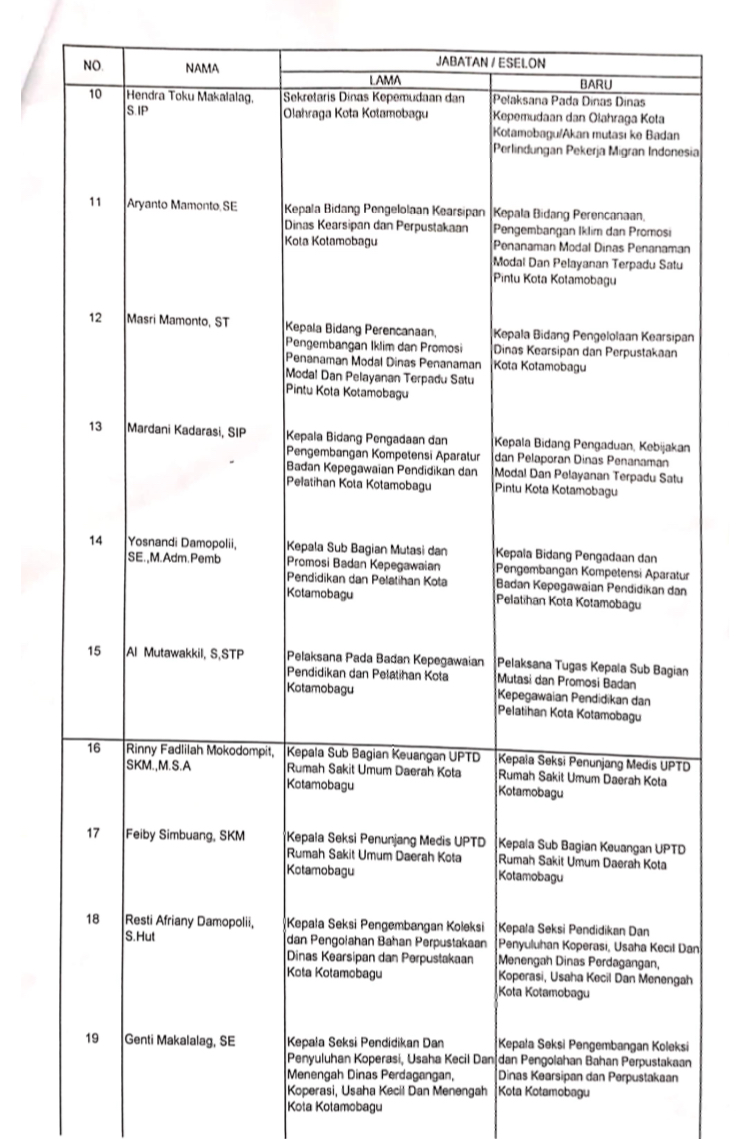 KOTAMOBAGU- Sebanyak 18 pejabat struktutal dilingkungan Pemerintah Kota Kotamobagu dilantik dan diambil sumpah, Rabu (2/9/2020).Pelantikan yang dilaksanakan di Rudis Wali Kota, dipimpin langsung Wali Kota Ir Hj Tatong Bara
