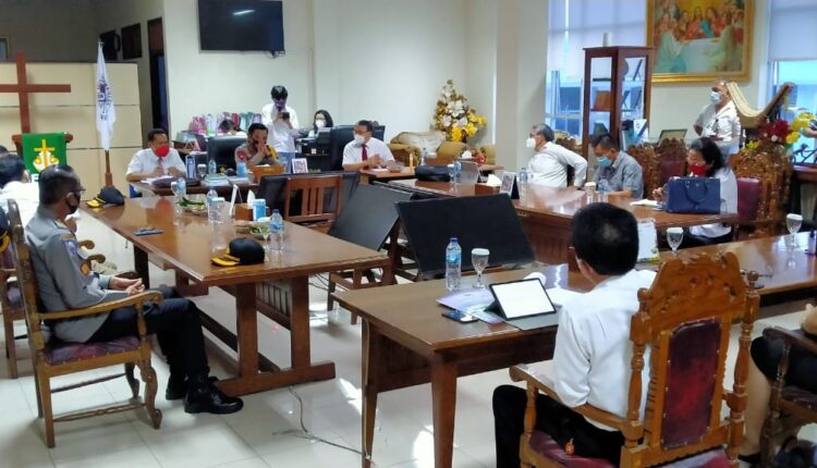 INDO NEWS – Ketua Sinode GMIM Pendeta Hein Arina bersama Badan Pekerja Majelis Sinode sambut kedatangan Kapolda Sulut Irjen Pol RZ Panca Putra di Kantor Sinode GMIM di Tomohon, Senin (7/9/2920) sore.