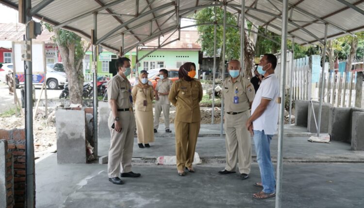 KOTAMOBAGU- Wali Kota Kotamobagu Ir Hj Tatong Bara melakukan peninjauan pembangunan pasar kuliner yang terletak di eks RSUD Datoe Binangkang Kota Kotamobagu, Senin 5 Oktober 2020