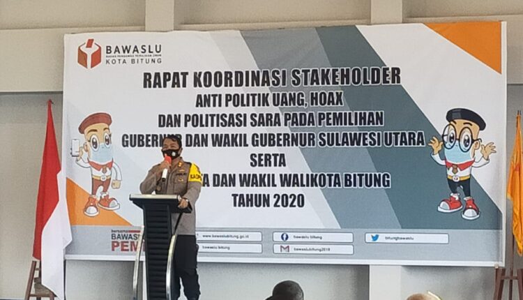 Hal tersebut disampaikannya saat menghadiri Rapat Koordinasi Stakeholders Anti Politik Uang, Hoax, dan Politisasi SARA pada Pemilihan Gubernur dan Wakil Gubernur Sulawesi Utara serta Walikota dan Wakil Walikota Bitung Tahun 2020, Jum’at (16/10), di Aula Fave Hotel Bitung.