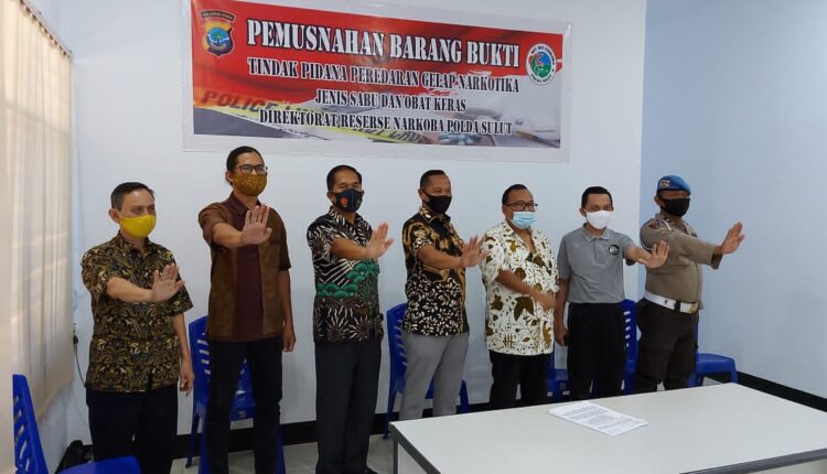 Dalam agenda tersebut dipimpin langsung Dirresnarkoba Polda Sulut AKBP Indra Lutrianto Amstono, yang ikut dihadiri dan disaksikan Kasie Napza Pidum Kejati Sulut Viktor Mamoto, Kabid Berantas BNNP Provinsi Sulut Kombes Pol Darwanto, dan Koordinator Penyidikan BPOM Manado Locky Tandjung.