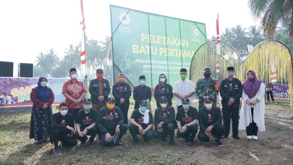 di lokasi pembangunan pesantren, Desa Bungko Kecamatan Kotamobagu Selatan, Kota Kotamobagu Bersama Bupati Bolaang Mongondow Dra.Yasti Soepredjo Mokoagow serta Ustadz Yusuf Mansur yang dijemput dengan prosesi adat daerah.