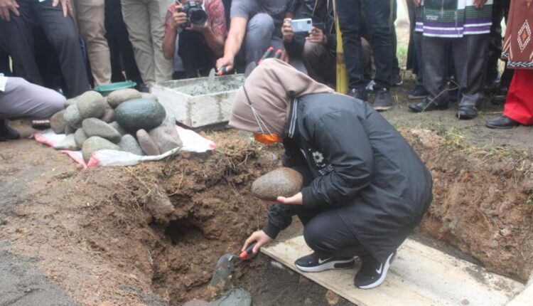 KOTAMOBAGU– Walikota Kotamobagu,Ir Hj.Tatong Bara melakukan peletakan batu pertama pembangunan Pesantren Thafizh Daarul Qur’an Ayyastiyah yang berlokasi di Desa Bungko Kecamatan Kotamobagu Selatan, Senin 9 November 2020