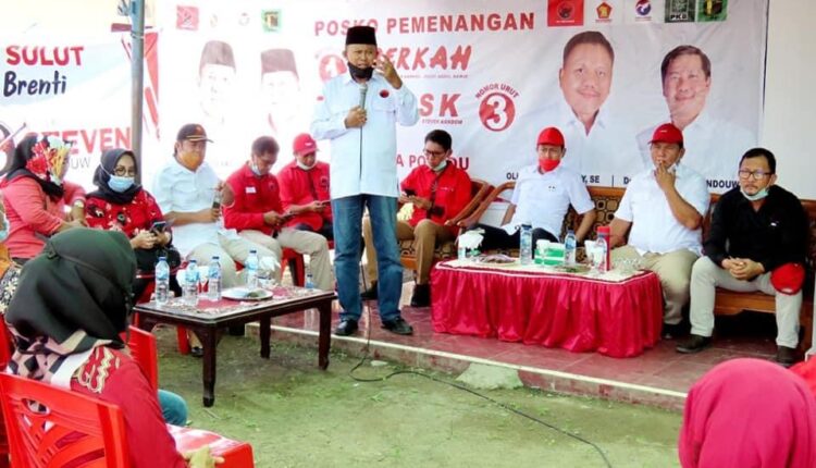 BOLSEL- Anggota DPR RI Dapil Sulawesi Utara dari Fraksi PDIP, Hi. Herson Mayulu,S.I.P Menghadiri kampanye terbatas pasangan Calon Bupati dan Wabup Bolsel, Hi. Iskandar Kamaru -Deddy Abdul Hamid (BERKAH) Di empat titik Desa Popodu dan Pintadia, Kecamatan Bolaang Uki, Selasa 17 November 2020