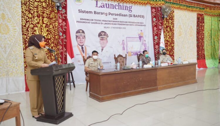 KOTAMOBAGU – Wali Kota Kotamobagu Ir Hj Tatong Bara, Selasa 17 November 2020 meuncurkan aplikasi Sistem Informasi Barang Persediaan (Si Baper), sebagai produk dari Badan Pengelolaan Keuangan dan Asset Daerah (BPKAD) Kotamobagu, untuk lebih menguatkan system control barang persediaan di Kotamobagu.