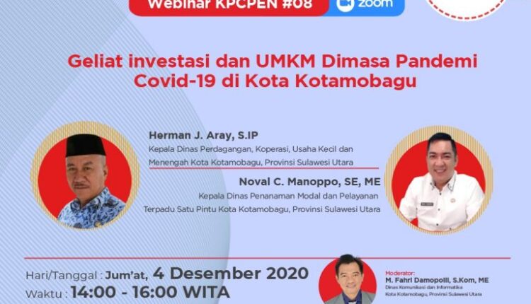 Webinar KPCPEN ini mengusung tema Geliat Investasi dan UMKM di masa pandemi Covid-19 di Kota Kotamobagu, yang diselenggarakan Jumat 4 Desember 2020.