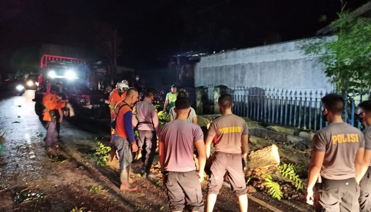 Mendapat laporan informasi dari masyarakat tentang adanya pohon tumbang, puluhan personel Samapta Polda Sulut langsung turun ke lokasi bersama dengan mobil crane dan peralatan evakuasi lainnya.