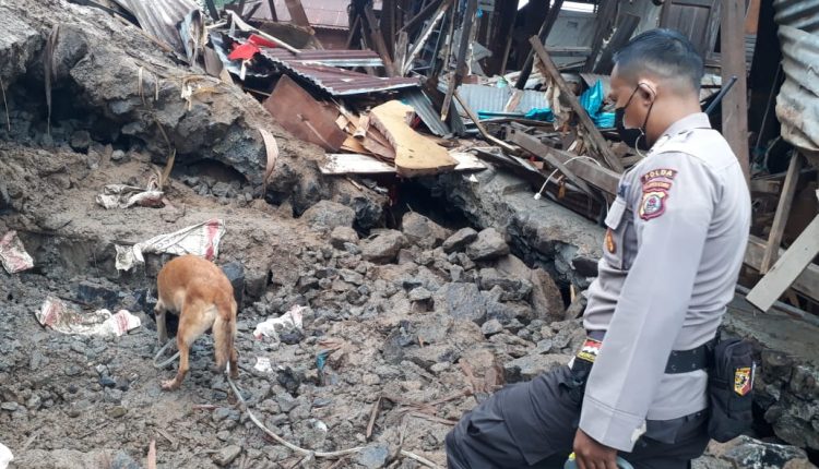 Evakuasi dilakukan dengan menggunakan alat berat dibantu dengan pelacakan oleh anjing pelacak K-9 Ditsamapta Polda Sulut.
