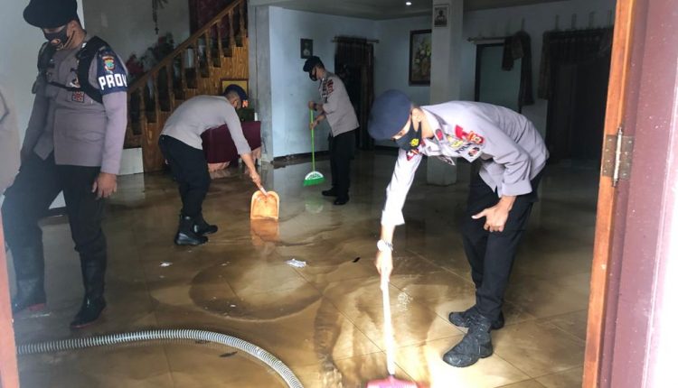 Kondisi ini membuat sejumlah personel Polda Sulut bergerak turun ke lapangan membantu warga membersihkan sisa-sisa material banjir.
