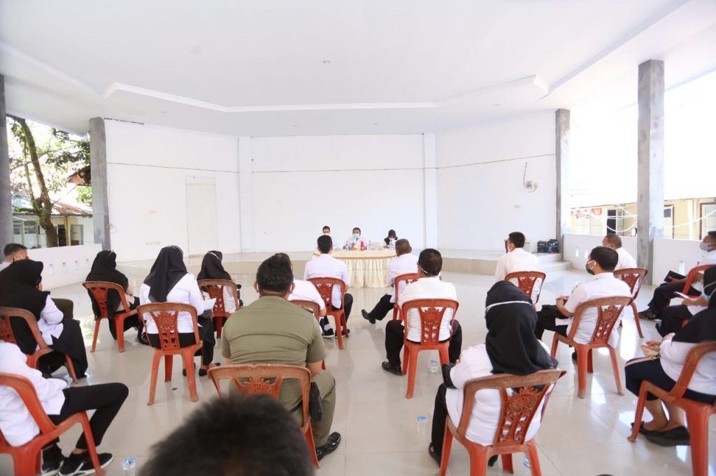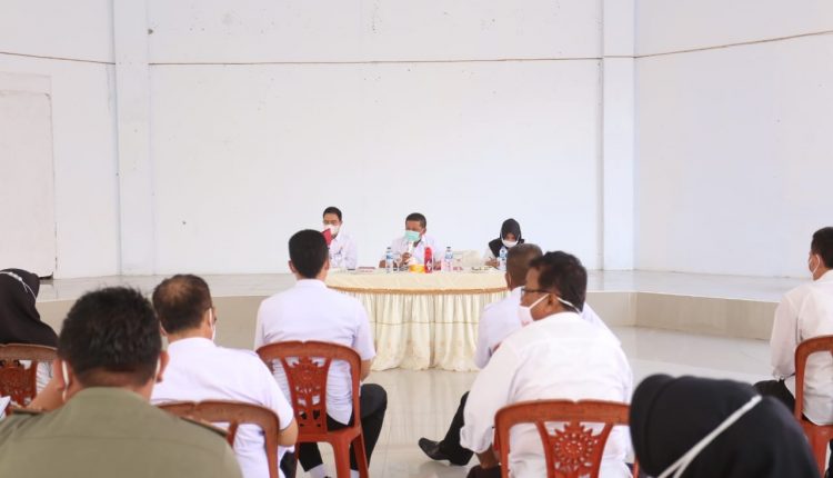KOTAMOBAGU- Wakil Walikota Kotamobagu, Nayodo Koerniawan, pimpin Rapat Gugus Tugas Covid-19 Kotamobagu, di Aula Kantor Wali Kota. Rabu 20 Januari 2020.