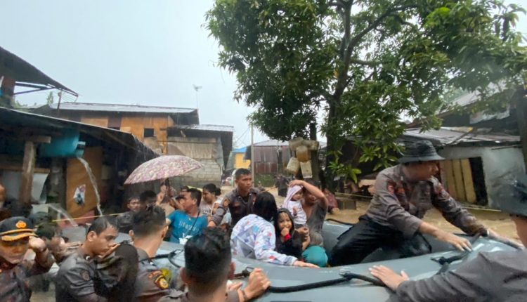 MANADO – Tim SAR Ditsamapta Polda Sulut berkekuatan 40 personel yang dilengkapi peralatan, diturunkan ke beberapa lokasi banjir dan tanah longsor di wilayah Kota Manado, Jum’at (22/01/2021) sore.