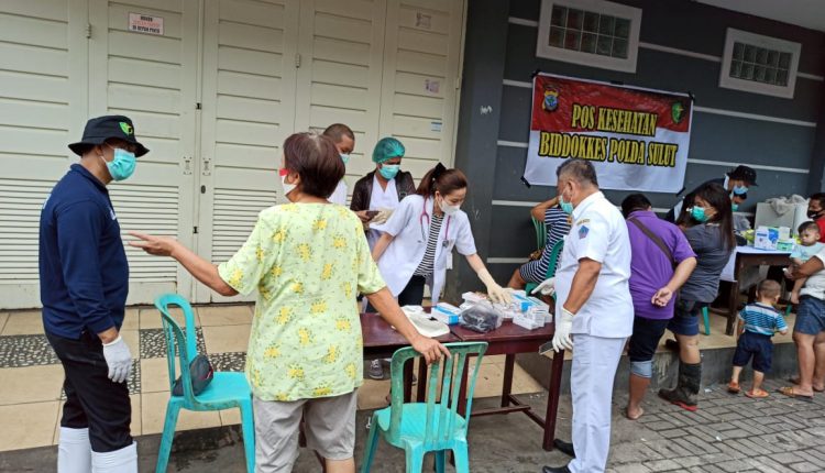 MANADO – Biddokkes (Bidang Kedokteran dan Kesehatan) Polda Sulut (Sulawesi Utara) kembali memberikan pelayanan kesehatan secara gratis kepada warga korban banjir di Kota Manado, Senin (25/01/2021) pagi.