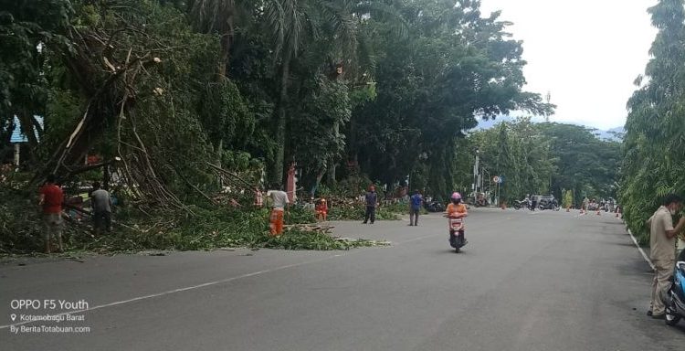 proses pemasangkasan pohon tersebut dilakukan di ruas jalan ahmad yani Kotamobagu, tepatnya di alun-alun boki hotinimbang.