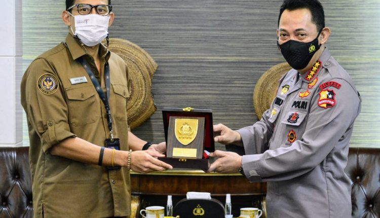 JAKARTA – Kapolri Jenderal Listyo Sigit Prabowo menyampaikan bahwa pertemuanya dengan Menteri Pariwisata dan Ekonomi Kreatif Sandiaga Uno membahas bagaimana menguatkan kembali lima destinasi super prioritas yang ada di Indonesia usai terdampak pandemi Covid-19 ini. Saat ini terdapat 34 juta masyarakat yang bergantung kepada sektor pariwisata.