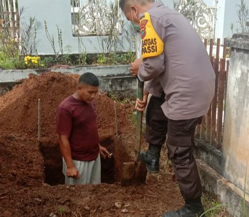 INDO NEWS – Sebagai bentuk kepedulian terhadap warga di wilayah hukumnya, Kapolsek Passi IPTU Muh Rosid, turut membantu warganya dalam proses penggalian liang lahat pemakaman salah satu pasein Covid-19 di Desa Bulud Kecamatan Passi barat, Kabupaten Bolaang Mongondow (Bolmong).
