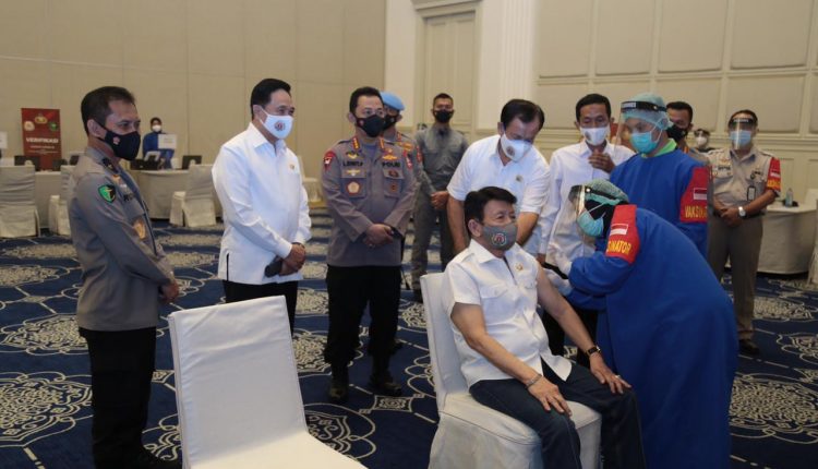 “Polri sudah menyiapkan tenaga Tracer dan 11 ribu tenaga vaksinator dan mempersiapkan Batalyon khusus untuk vaksinasi. Tempat yang sering terjadi interaksi seperti pasar juga dikerjakan, diharapkan muncul imunity atau kekebalan tubuh. Harapan perhari 1 juta sementara baru 3-4 ratus ribu,” ucap mantan Kapolda Banten itu.