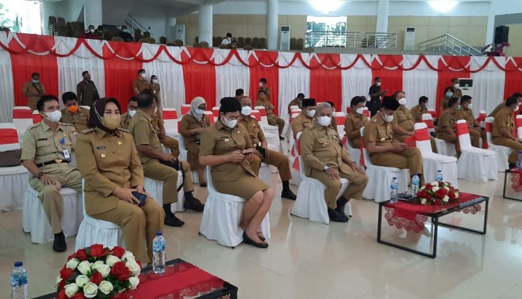 KOTAMOBAGU -Wali Kota Kotamobagu, Tatong Bara menghadiri sosialisasi penerapan manajemen kinerja, tata cara pengisian Jabatan Pimpinan Tinggi (JPT) dan disiplin kinerja PNS oleh Komisi Aparatur Sipil Negara (KASN), Senin 19 April 2021