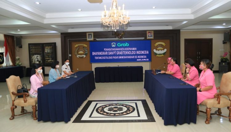 INDO NEWS – Bhayangkari dan PT Grab Teknologi Indonesia menandatangani Memorandum of Understanding (MoU) terkait dengan digitalisasi pasar untuk usaha mikro, kecil, dan menengah (UMKM) Bhayangkari di seluruh Indonesia.
