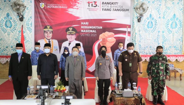 KOTAMOBAGU – Wakil Walikota Kotamobagu, Nayodo Koerniawan, SH mewakili walikota Kota Kotamobagu, bersama para anggota Forum Koordinasi Pimpinan Daerah (Forkopimda) Kota Kotamobagu, mengikuti Upacara Peringatan Hari Kebangkitan Nasional (HKN) ke – 113 Tahun, secara Virtual di Aula Rumah Dinas Wali Kota Kotamobagu.