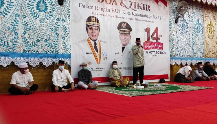 KOTAMOBAGU -Mensyukuri segala capaian pembangunan yang telah diraih Kota Kotamobagu di usia yang ke 14 tahun, Pemkot menggelar Doa dan Zikir Bersama di Aula Rudis Wali Kota Kotamobagu, Senin 24 Mei 2021 malam.