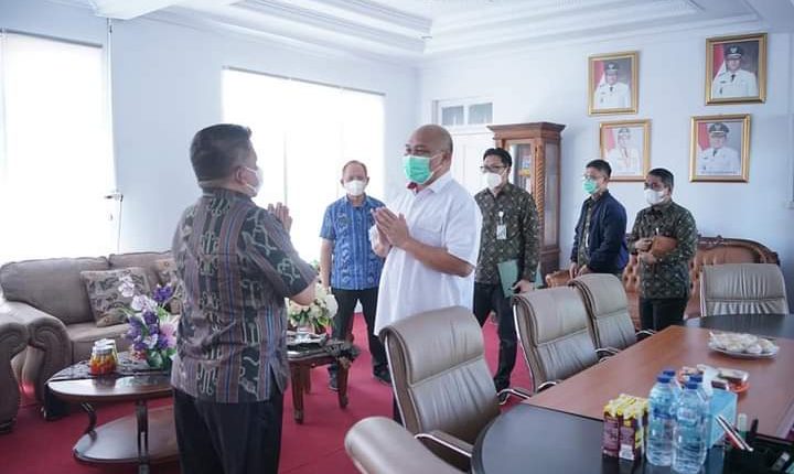 KOTAMOBAGU – Mewakili Walikota Kotamobagu, Ir.Hj.Tatong Bara, Wakil walikota Nayodo Kurniawan menerima Kunjungan kerja Arief Budiarto, Deputi Direktur BPJS Ketenagakerjaan Wilayah Sulawesi-Maluku beserta jajaran diruang kerja Kantor Walikota Kotamobagu Kamis 3 Juni 2021