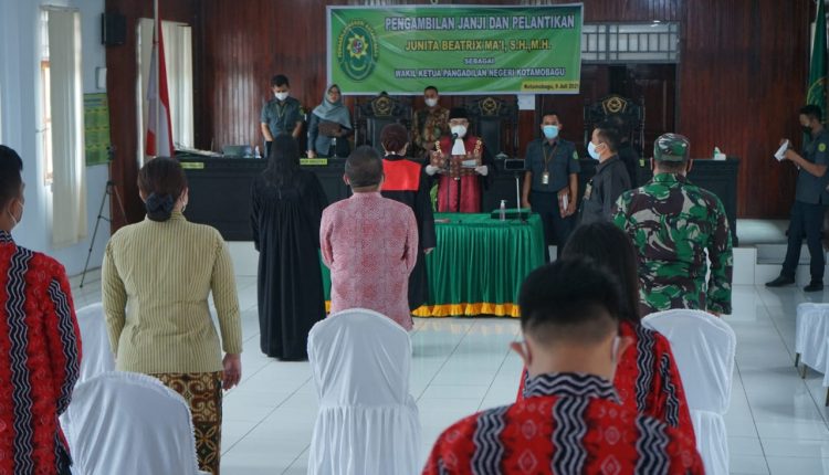Junita Beatrix Ma’i, S.H.,M.H. dilantik sebagai Wakil Ketua Pengadilan Negeri Kotamobagu yang baru, Jumat 9 Juli 2022.