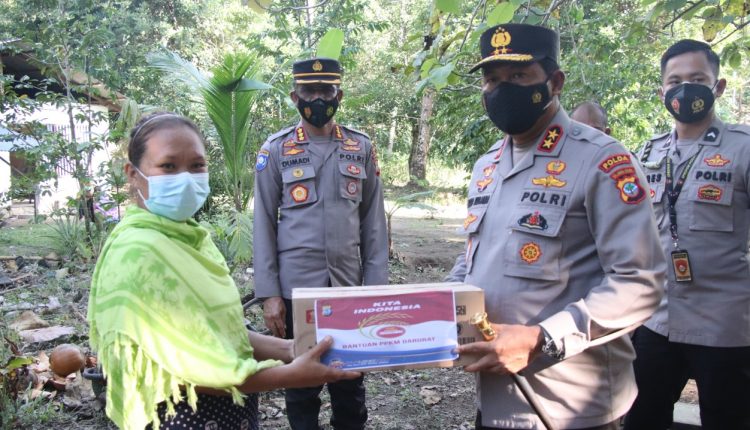 Kapolda yang didampingi Dirbinmas Kombes Pol Dumadi dan Kabid Humas Kombes Pol Jules Abraham Abast, berturut-turut menyerahkan bantuan sosial (bansos) berupa sembako secara simbolis kepada warga setempat.