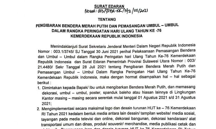 Memeringati HUT RI, Pemkot Kotamobagu mengeluarkan surat edaran pengibaran bendera dan pemasangan umbul-umbul