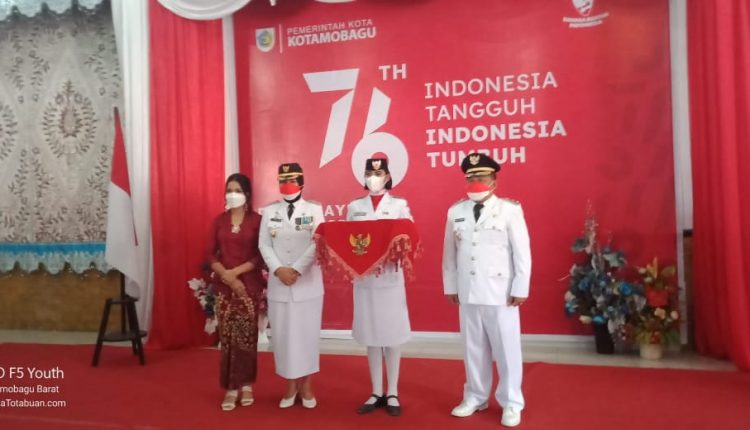 Dari seluruh yang bertugas pada pelaksanaan upacara yang dipimpin oleh Wali Kota Kotamobagu Ir Hj Tatong Bara tersebut, ada 1 orang wanita yang ditugaskan menjadi pembawa baki bendera, di Pasukan Pengibar Bendera Pusaka (Paskibraka).