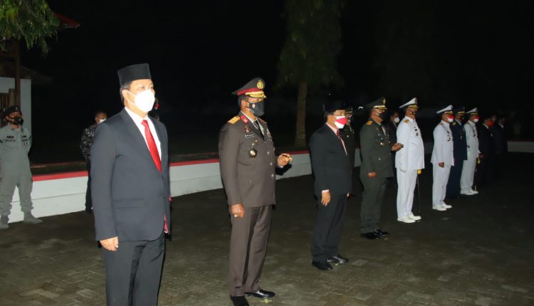 INDO NEWS – Kapolda Sulawesi Utara (Sulut) Irjen Pol Nana Sudjana bersama Wakil Gubernur Sulut Steven Kandouw serta Forkopimda lainnya, menghadiri Apel Kehormatan dan Renungan Suci dalam rangka menyambut HUT ke-76 Kemerdekaan Republik Indonesia, Senin (16/08/2021), malam.