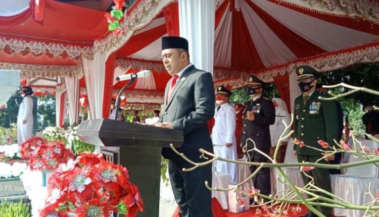 KOTAMOBAGU – Ketua Dewan Perwakilan Rakyat Daerah (DPRD) Kota Kotamobagu Meiddy Makalalag ST, membacakan teks proklamasi kemerdekaan Republik Indonesia (RI), Selasa 17 Agustus 2021, pada upacara HUT RI Ke – 76, dilapangan Kotamobagu.