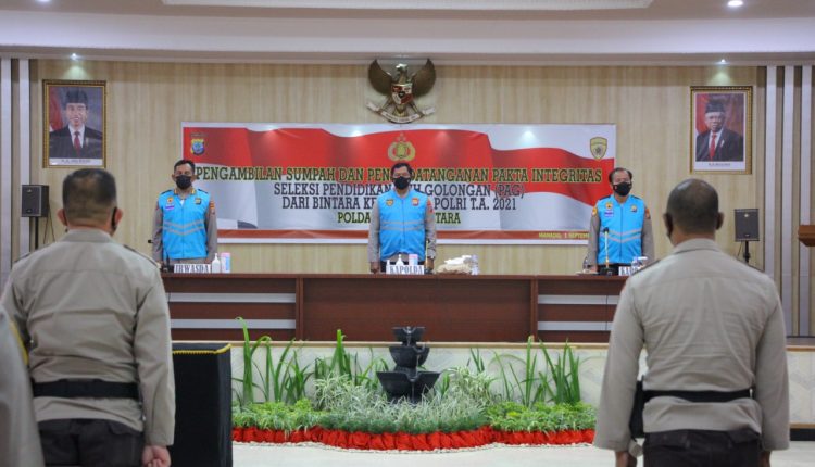 Pelaksanaan seleksi diawali dengan pengambilan sumpah dan penandatanganan pakta integritas. Kegiatan digelar di aula Catur Prasetya Polda Sulut, Rabu (1/9/2021) dipimpin oleh Kapolda Sulut Irjen Pol Nana Sudjana.